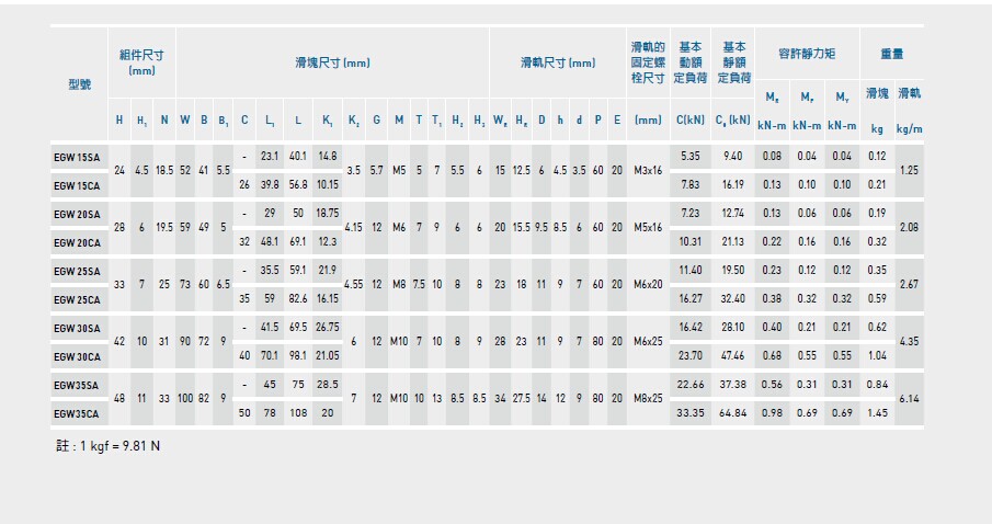 设备详细描述(台湾HIWIN滚珠导轨低组装EGW系列): |
