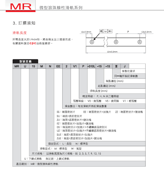 设备详细说明 设备详细描述(台湾CPC微型导轨MR系列)