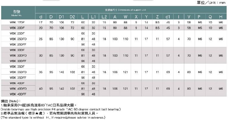 法兰型-WBK型 (固定端),丝杆支撑,直线运动元件